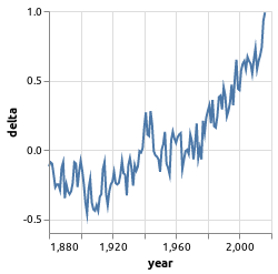 Voila, we have some nice plots to show us that anomalies in temperature get worse every year. By reading more about the Vega Lite data structure to describe plots we can find more ways to visualize our data. The example was fairly simple and doesn’t really convey the full capabilities of the tool. Some nice feature include the ability to use the visualizations is Reagent components and also a full blown static site generator. This could be nice in the case where you want to export the results of some kind of research.